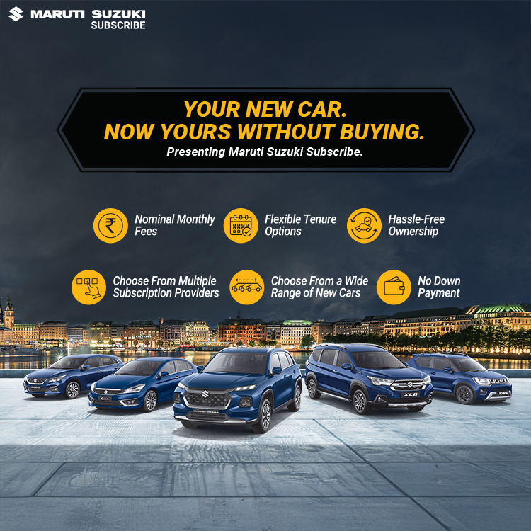 Maruti Suzuki Subscribe enables all customers to enjoy driving their preferred Maruti Suzuki cars without having to deal with all the financial responsibilities that come with owning a car.All you need to do is opt for a monthly subscription plan at a fixed monthly fee, which includes the routine maintenance and insurance costs, and choose a flexible tenure. At Kankariya Automobiles Pvt Ltd in, , Ahmednagar, all Hatchback, Sedan, SUV, the MUV models line-up includes Baleno, Invicto, EVitara, Jimny, Ciaz, Ignis, Fronx, Grand Vitara, XL6. Here, you will enjoy Maruti Suzuki Subscribe benefits such as: