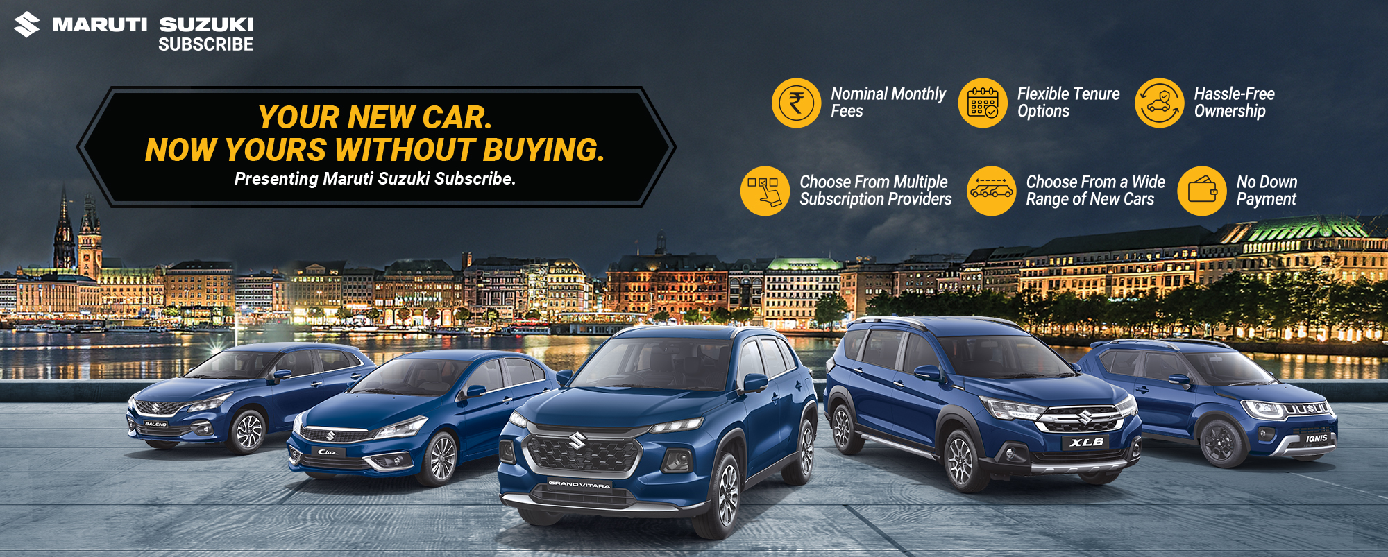 Located in Ahmednagar, Kankariya Automobiles Pvt Ltd offers a plethora of options of Nexa cars for Maruti Suzuki Subscribe. You can choose your desired Maruti Suzuki car and drive it home at nominal monthly fees for a variety of flexible tenure periods. Whether you prefer Hatchback, Sedan, SUV or even MUV you are sure to find it at Kankariya Automobiles Pvt Ltd, with an easy Maruti Suzuki Subscribe plan.